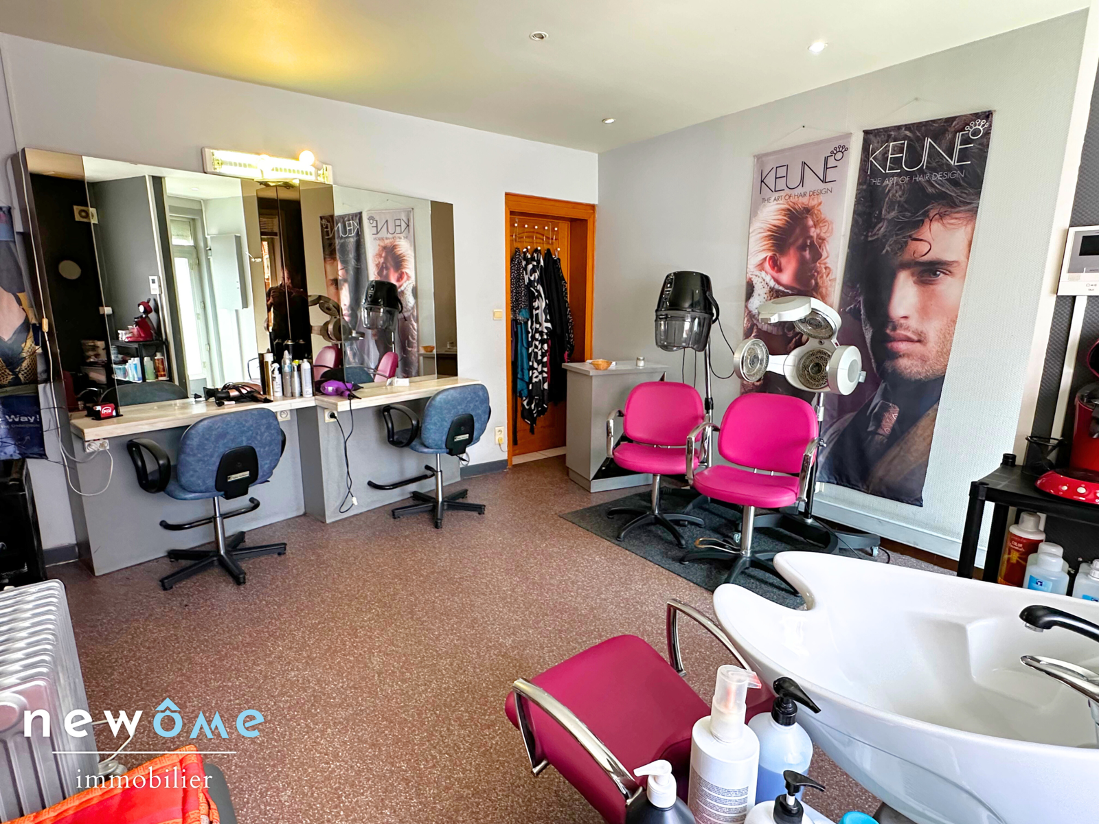 Rez: une pièce d'entrée idéale pour un espace professionnel, bureau ou tout autre usage, un spacieux séjour de 45m² avec cuisine ouverte équipée (taques de cuisson au gaz, four, hotte, micro-ondes, lave-vaisselle, évier et frigo), une salle de bain avec espace buanderie (baignoire, douche et meuble vasque), et un WC indépendant.